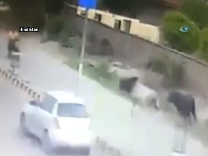 Boğa motosiklete saldırdı