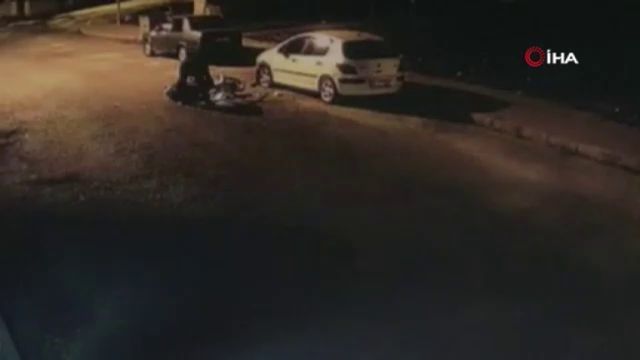 İzmir’de park halindeki araca çarpan motosiklet sürücüsünün kaçtığı anlar kamerada