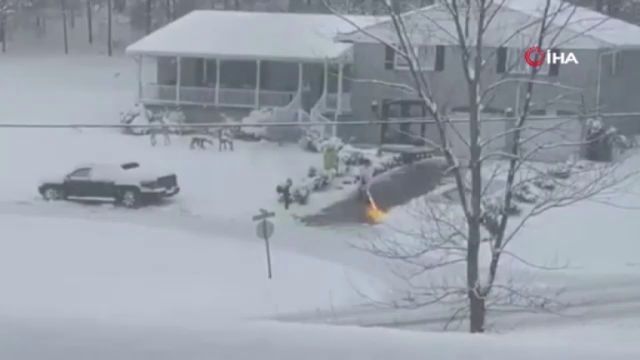 Karı temizlemek için lav silahı kullandı