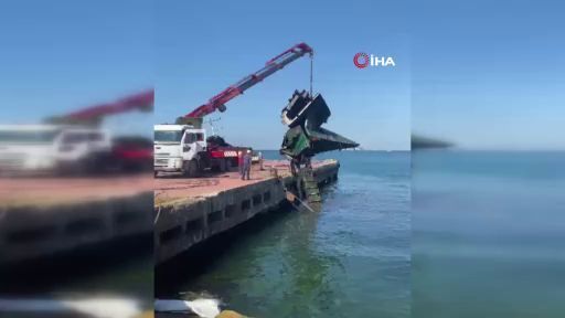 Maltepe Sahili'nde batan geminin parçaları karaya çıkartıldı