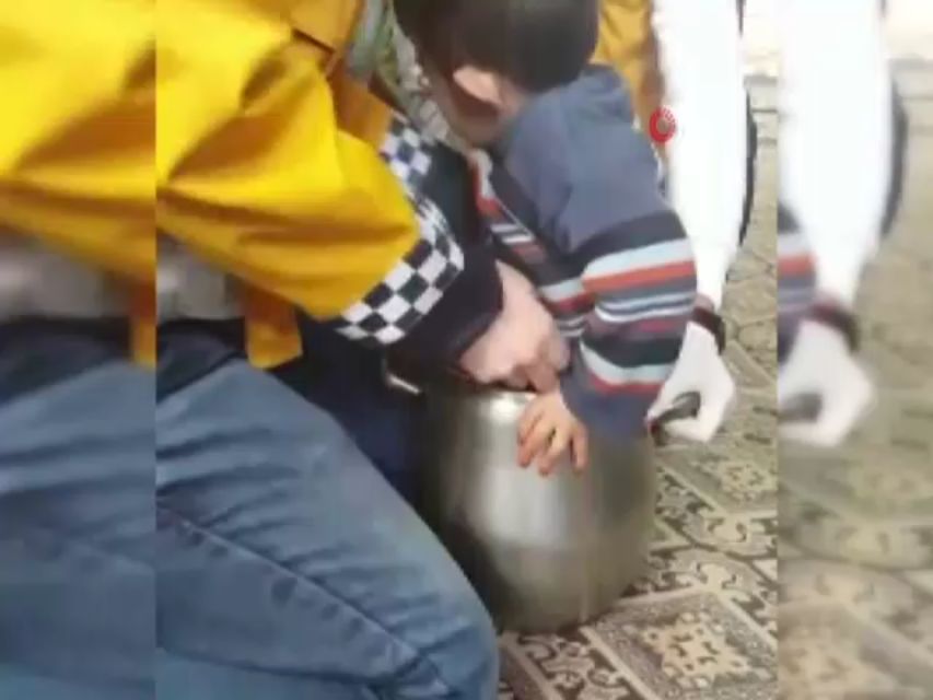 Minik afacan düdüklü tencereye sıkıştı