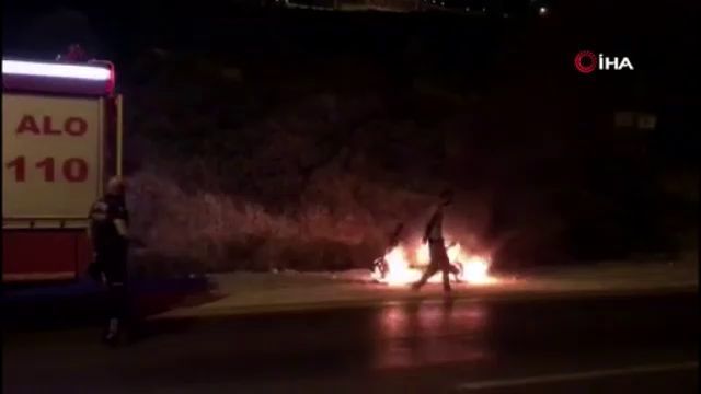 Motosikletini ateşe verdi, oturarak bir de yanışını seyretti