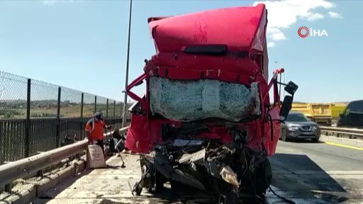 TEM Otoyolu’nda kamyon hafriyat kamyonuna çarptı