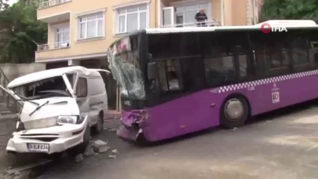 Üsküdar’da kontrolden çıkan halk otobüsü minibüse feci şekilde çarptı: 4 yaralı